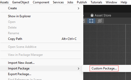 In a game, we can import the package by navigating to Assets→ Import Package → Custom Package.